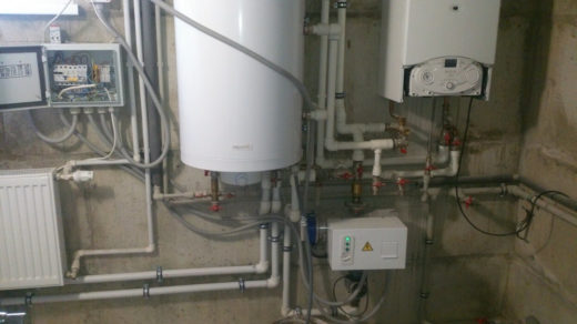 Для радиаторного отопления использовался специализированный (белого цвета) полипропиленовый трубопровод чешской фирмы Wavin — Ekoplastik Therm